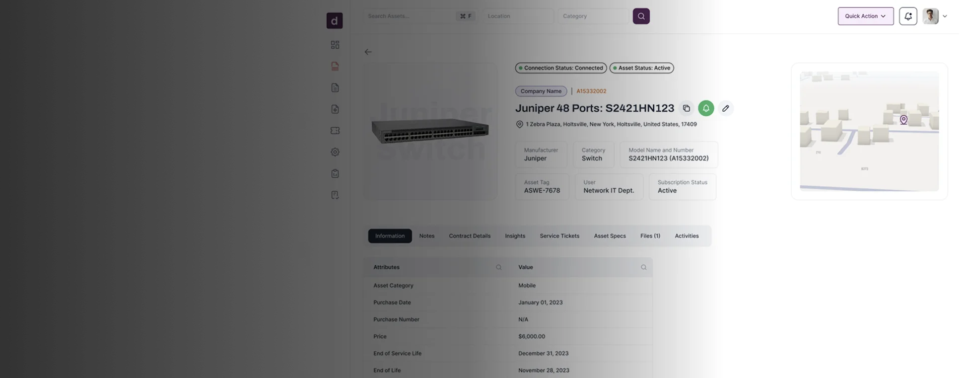 Track both connected and non-connected assets in one place—TVs, and smart thermostats, in-room coffee makers, backup routers, and more.